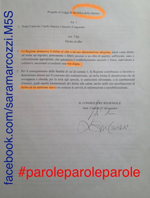 ODG: Progetto di Legge n. 78/2015 firmatari bipartisan D’Alessandro (PD) Sospiri (FI) con l’obiettivo di inserire in statuto il contrasto alla malnutrizione, il diritto a un ambiente sano, il diritto a una vita “degna”.